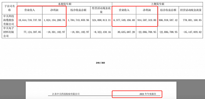 需要指出的是,在2021年年报和曾经的分拆上市预案中,提及的有关中天科技海缆2020年的营业收入、净利润数据,有所出入。