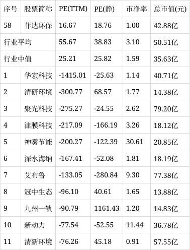 从行业市盈率排名来看,公司所处的环保行业行业市盈率平均55.67倍,行业中值25.21倍,菲达环保排名第58位。