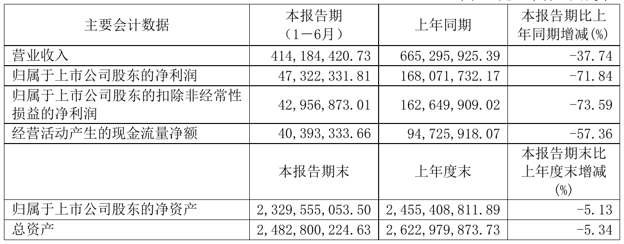 挖贝网8月25日,江南高纤(600527)近日发布2021年半年度报告,报告期内营业收入414,184,420.73元,同比减少37.74%;净利47,322,331.81元,同比净利减少71.84%。