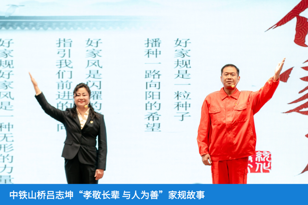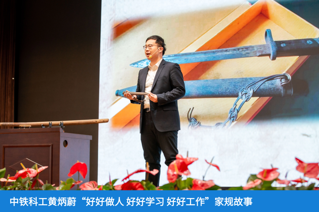 中铁工业党委委员、纪委书记陈立峰宣读了“好家规”评选结果,“孝敬长辈与人为善”“忠孝仁厚淡泊明志”等18个家规故事作为中铁工业首届“好家规”故事予以表彰、发布。