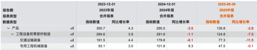 这导致2025年上半年收入的下滑,下滑最多的就是交通运输设备。