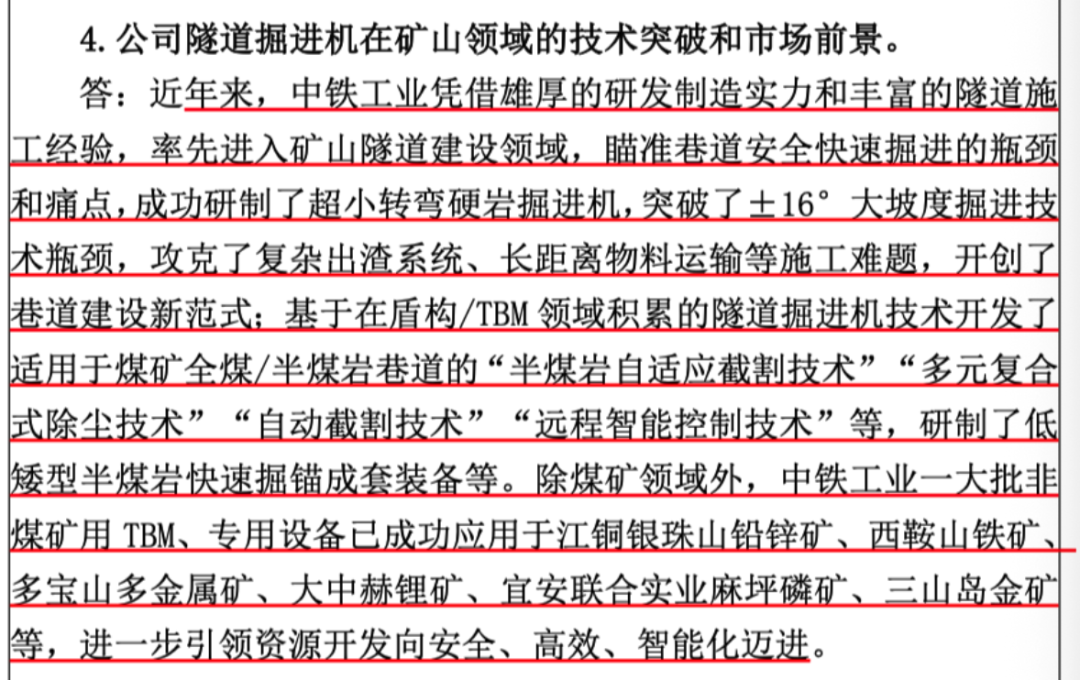 (1)隧道施工装备领域,公司是中国盾构机行业的开拓者和领军者;