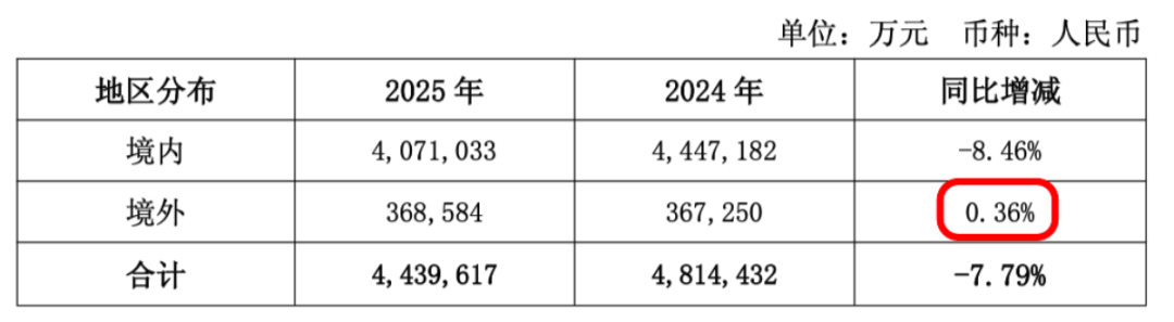 2025年新增合同中国内市场是下滑的,而海外是增长的。