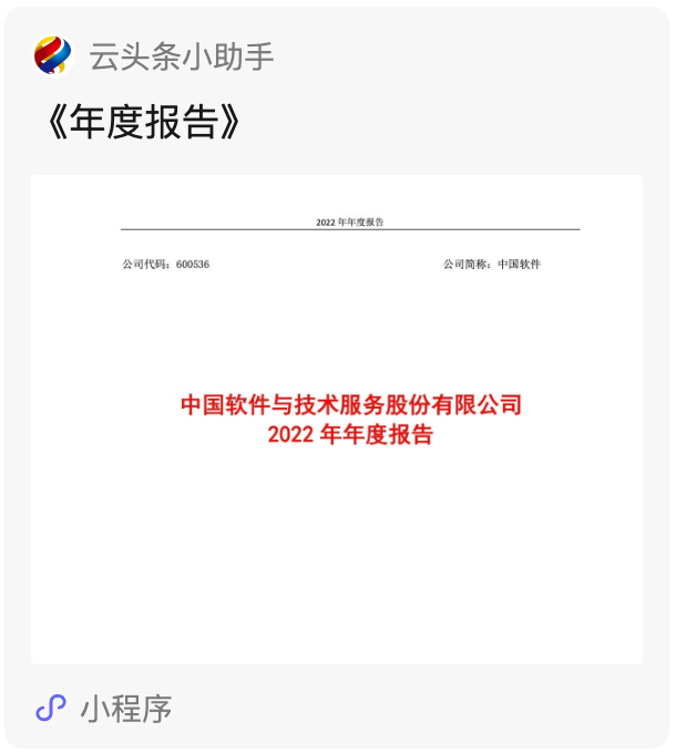 2023年4月28日,中国软件发布《2022年年度报告》。