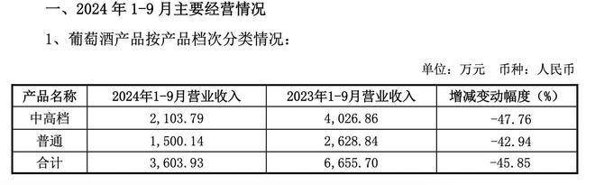 前三季度经营数据显示,在莫高股份三大主业中,葡萄酒产品营收为3603.93万元,同比下滑45.85%。其中,中高档葡萄酒营收同比下滑47.76%至2103.79万元;普通葡萄酒营收同比下滑42.94%至1500.14万元。按销售渠道划分,其直销渠道葡萄酒营收降幅较大,达到65.68%。