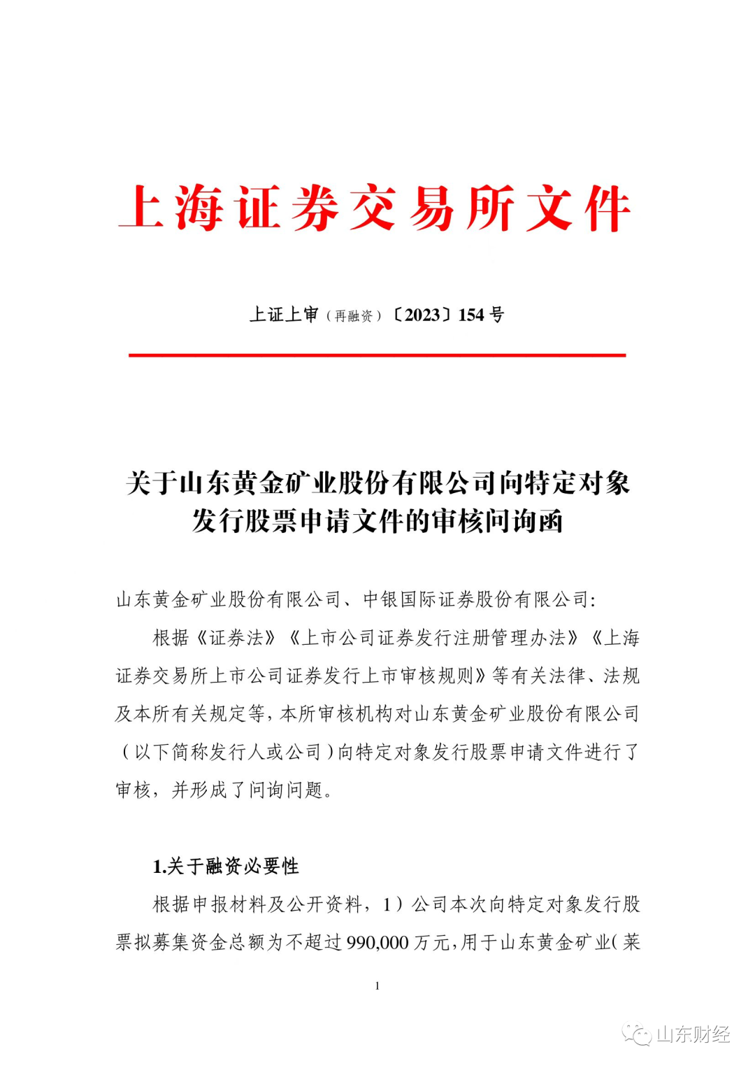 3月24日,上交所针对山东黄金定增募资不超99亿元下发审核问询函。