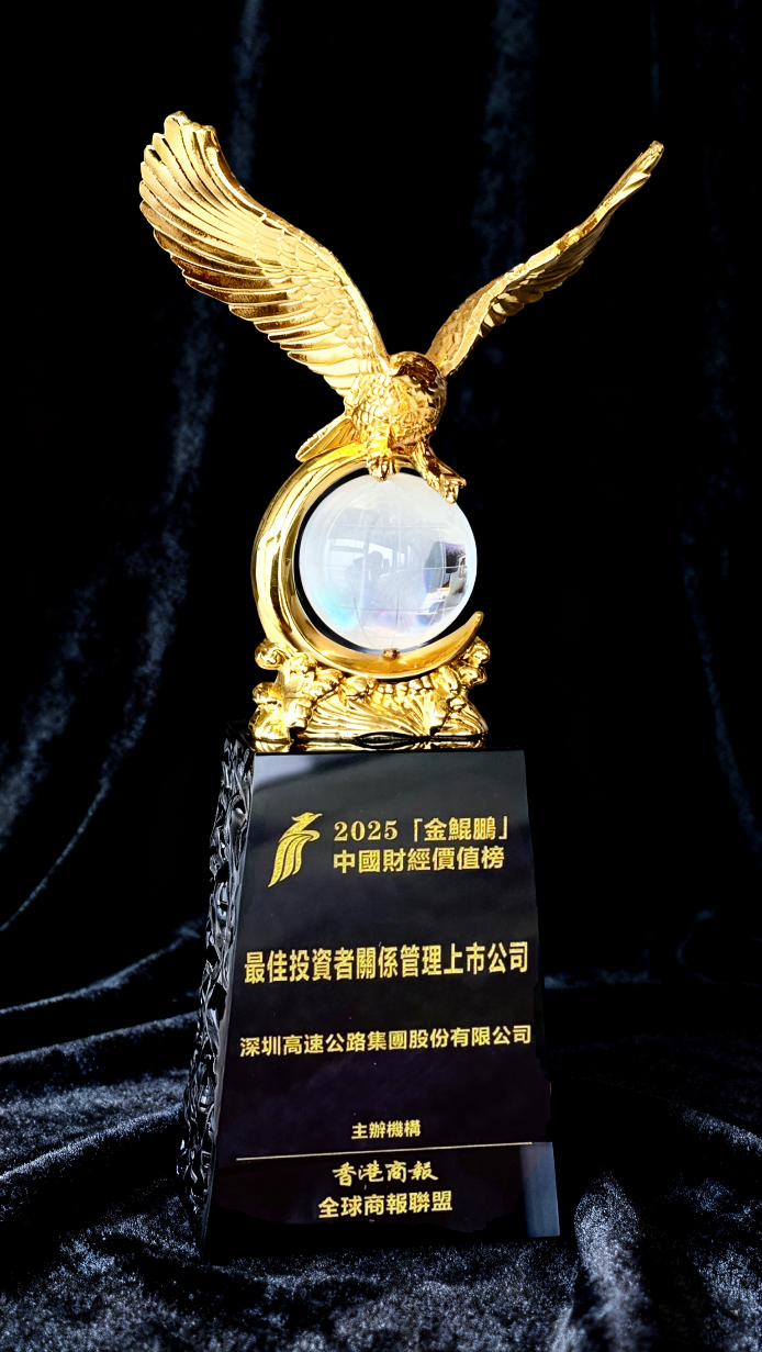 近日,由香港商报及全球商报联盟联合主办的2025全球商报经济论坛暨「金鲲鹏」中国财经价值榜颁奖盛典在香港举行。深圳高速公路集团股份有限公司凭借在投资者关系管理方面的卓越表现,荣获“最佳投资者关系管理上市公司”奖,这也是深高速首次获得该奖项。