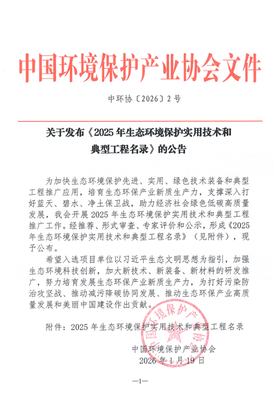 “2025年生态环境保护典型工程奖”由中国环境保护产业协会牵头组织评选,评审覆盖技术创新、治理成效、示范价值等核心维度,是全国环保产业领域极具权威性、影响力的标杆性奖项。