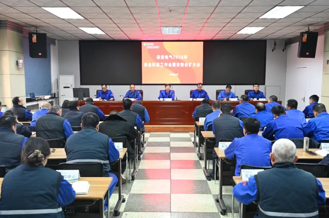 1月15日,保变电气召开2026年安全环保工作会暨安委会扩大会,传达贯彻集团公司工作部署,总结2025年安全环保工作,安排部署2026年工作任务。保变电气党委书记许涛出席会议并讲话,总经理、党委副书记刘东升安排部署工作,党委副书记、工会主席赵永强、总会计师苟通泽、纪委书记李文周出席会议。副总经理周爱东主持会议并传达集团公司文件。