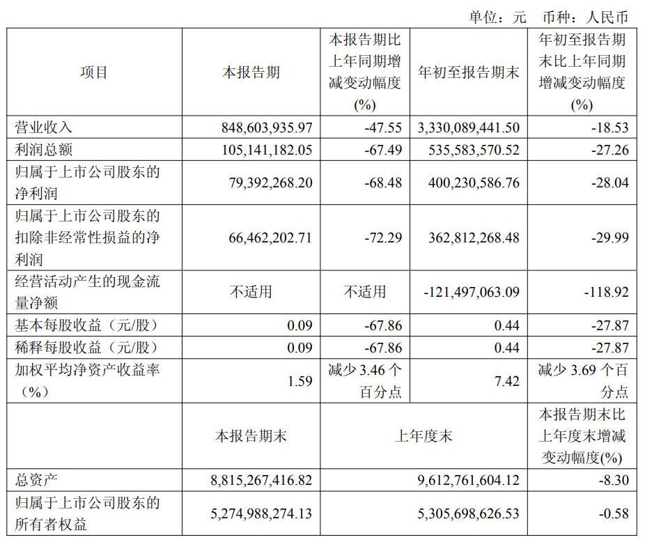 其中,2025年第三季度,老白干酒实现营业收入8.49亿元,同比下降47.55%;归属于上市公司股东的净利润7939.23万元,同比下降68.48%。