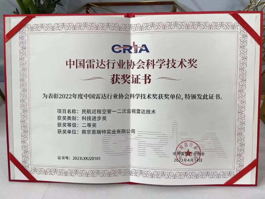 此外民航近程空管一二次监视雷达技术获得2022年度中国雷达行业协会颁发的科学技术奖科技进步二等奖。