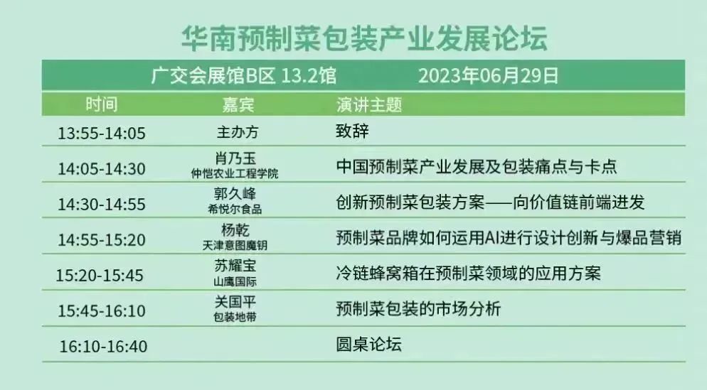 备注:本次高峰论坛是《2023华南国际餐饮包装展览会》同期论坛,一次报名同时满足观展与论坛,欢迎大家报名!