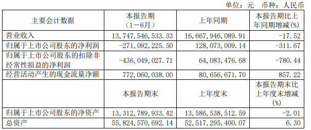 今年上半年,山鹰国际实现营业收入137.48亿元,同比下降17.52%,净亏损2.71亿元,而上年同期净利润1.28亿元。值得注意的是,这是公司十多年来首次上半年净利润“告负”。