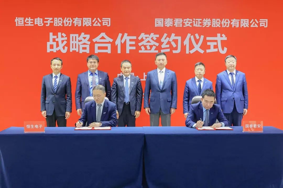 国泰君安党委书记、董事长贺青,恒生电子董事长刘曙峰出席签约仪式;国泰君安党委副书记、总裁王松,恒生电子总裁范径武代表双方签署战略合作协议;国泰君安副总裁罗东原,国泰君安首席信息官俞枫,恒生电子高级副总裁王锋,恒生电子总裁助理李铖等共同见证签约。