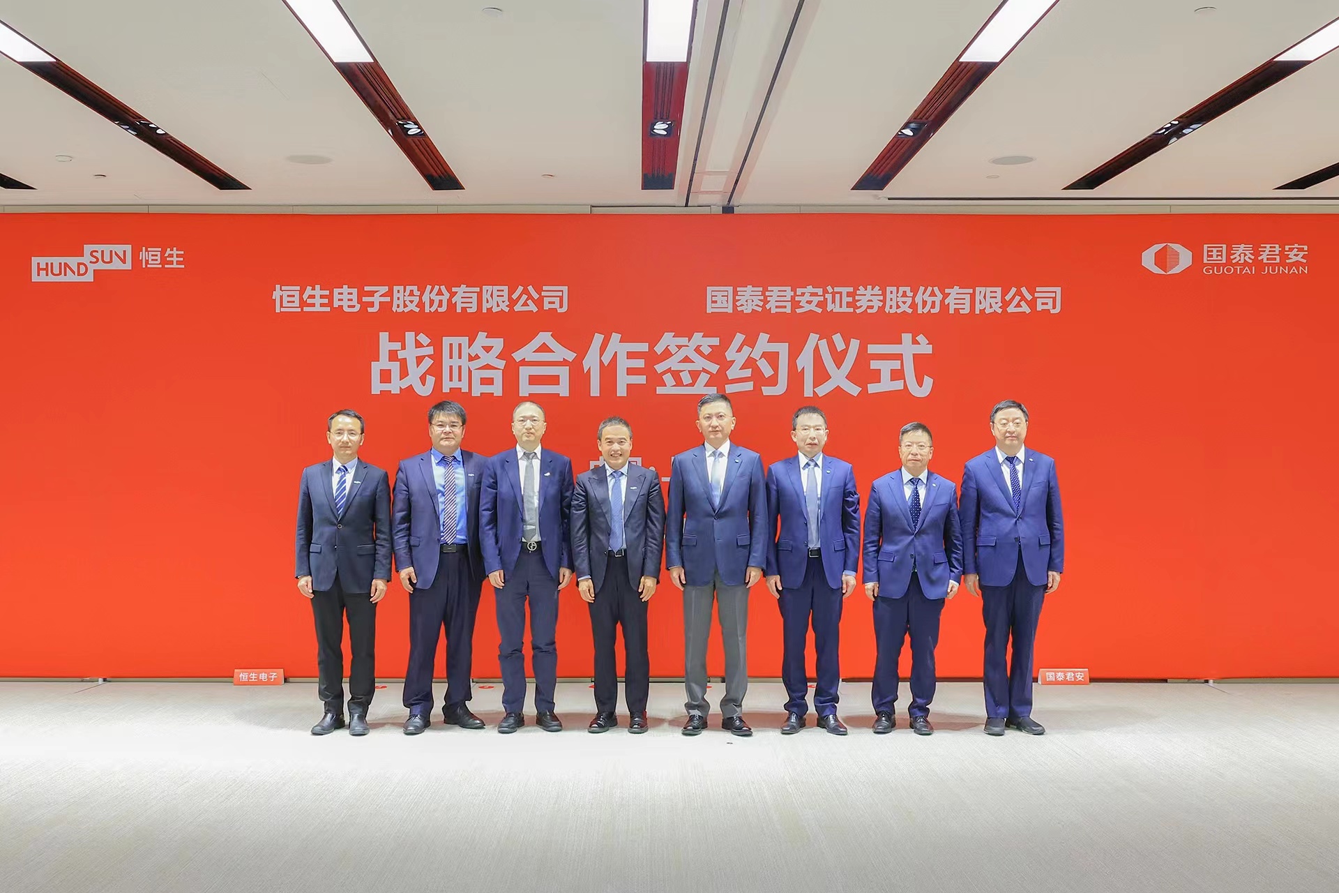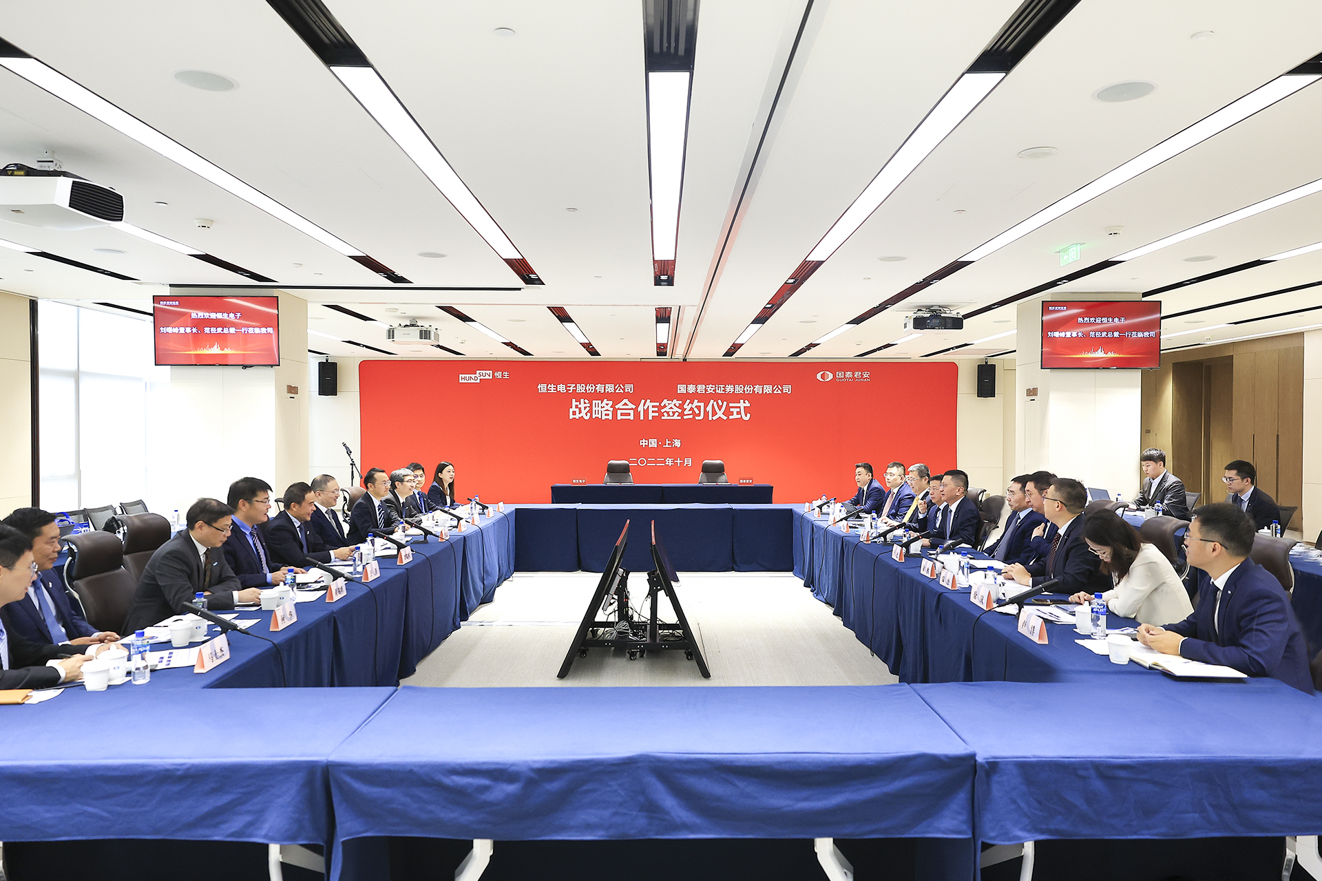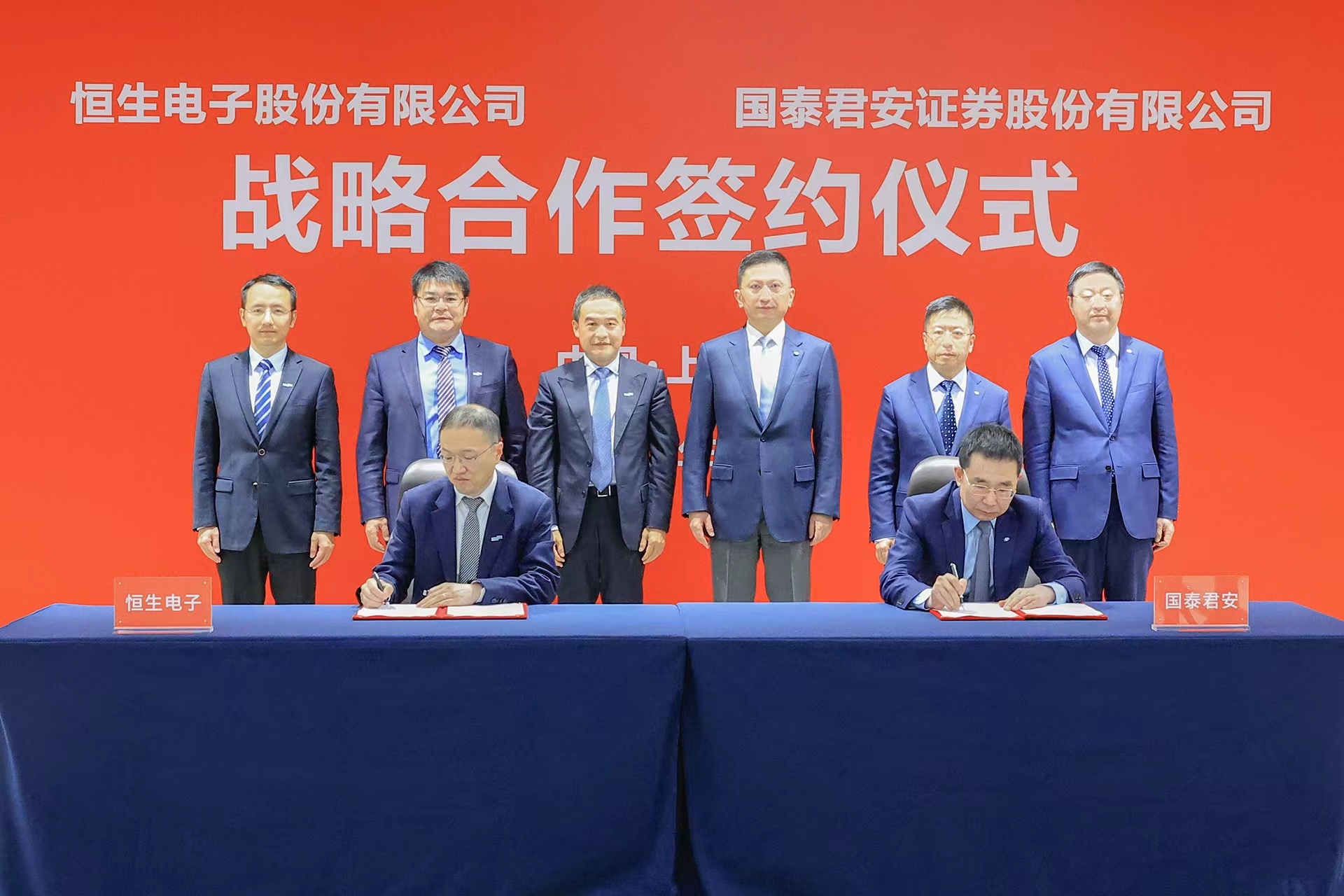 10月14日,国泰君安与恒生电子股份有限公司(简称“恒生电子”)举行战略合作签约仪式。国泰君安党委书记、董事长贺青,恒生电子董事长刘曙峰出席签约仪式;国泰君安党委副书记、总裁王松,恒生电子总裁范径武代表双方签署战略合作协议;国泰君安副总裁罗东原,国泰君安首席信息官俞枫,恒生电子高级副总裁王锋,恒生电子总裁助理李铖等共同见证签约。