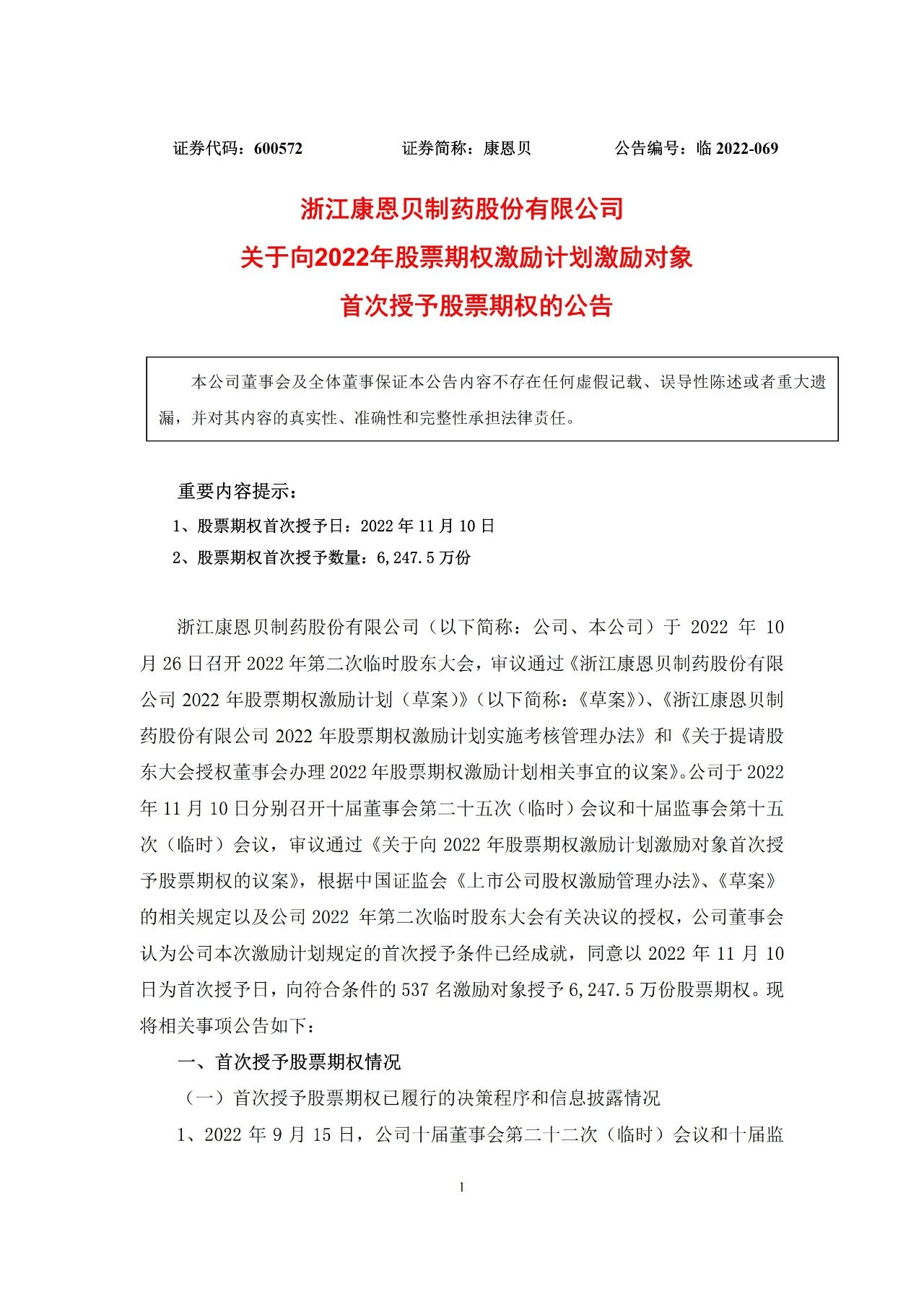 在保持企业效益稳步增长的同时,康恩贝加快完善薪酬福利与中长期激励体系建设,使基层一线员工、核心员工共创共享企业发展成果。2022年,公司持续优化分配和激励机制,一方面推进员工薪酬“扩中”“提低”行动方案,重点提升基层及低收入员工薪酬,一线员工薪酬同比增长约14%;另一方面正式实施2022年股票期权激励计划,向核心骨干537人授予6247.5万份股票期权,打造着眼于公司可持续发展的事业共同体、命运共同体。