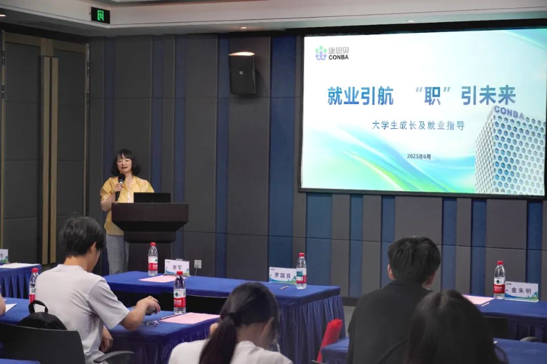 康恩贝人力资源总监张佩佩则聚焦职场胜任力,详解企业发展所需人才的专业素养与技能图谱,鼓励学生们树立理性择业观,提升综合素养。