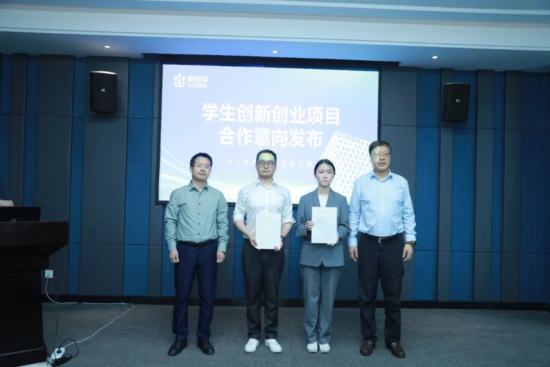 活动伊始,浙江中医药大学药学院李汇同学带领的创新创业项目团队与康恩贝股份公司在罗国良、谢军的见证下正式签署合作意向书,标志着校企合作迈向新台阶。