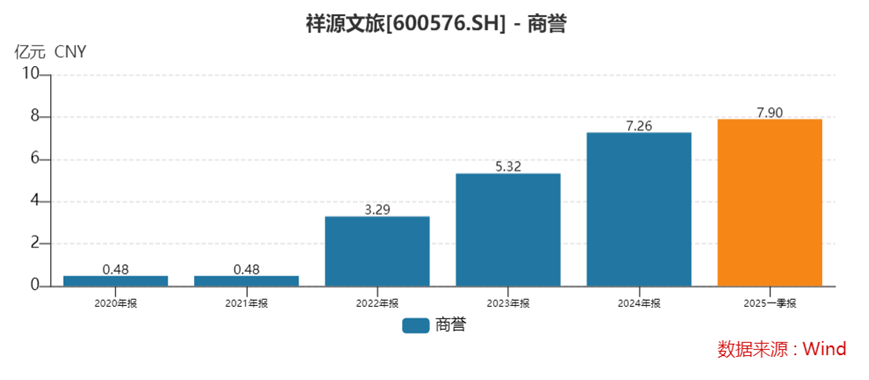 此外,祥源文旅的激进并购在快速扩大资产规模的同时,也积累了惊人的商誉包袱。财报显示,公司商誉从2021年的0.48亿元飙升至2025年一季度的7.90亿元,三年多增长了16倍。公司的商誉水平更是显著高于黄山旅游(2025年一季度为0.6亿元)、峨眉山A(商誉为0)等同业公司。高额商誉不仅增加了资产负债表风险,也带来了持续的减值压力。2022年到2024年公司已累计计提近2800万元商誉减值损失,未来若部分收购项目业绩不及预期,减值规模可能进一步扩大。