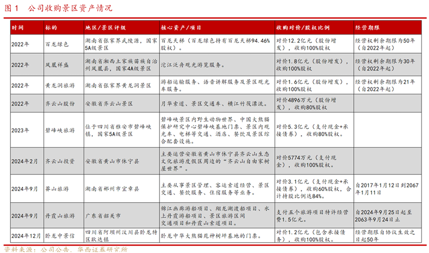 祥源文旅的并购狂潮在2022年后明显加速。根据公开资料梳理:2022年,公司以16.32亿元收购百龙绿色、凤凰祥盛等5家文旅资产;2023年,以5.3亿元收购碧峰峡旅游80%股权;2024年,再以3.1亿元控股湖南莽山景区。短短三年内并购支出已超20亿元,远超公司自身造血能力。