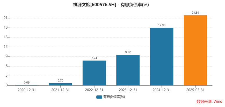这种并购增长的策略直接反映在财务数据上,从2020年底到2025年一季度,公司有息负债率从0.09%一路狂飙至21.89%,增长了243倍;2025年一季度末,总负债达18.26亿元,较去年同期增长107.79%。