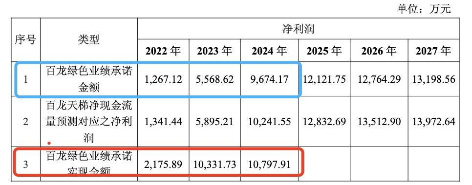 注入公司资产包含上交所本次问询的北京百龙绿色科技企业有限公司(下称“百龙绿色”),以及张家界黄龙洞、齐云山等。其中百龙绿色主营张家界森林公园百龙天梯项目,2022-2024年的净利润分别为2176万元、1亿元、1.1亿元,均超额完成此前承诺的1267万元、5569万元及9674万元。但即便如此,公司依然在2022-2024年对百龙绿色分别计提456万元、447万元及434万元商誉减值准备。