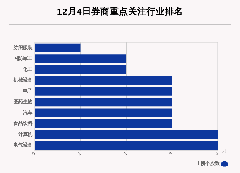 从券商对行业的关注度来看,券商关注个股数居前的行业分别是电气设备、计算机、食品饮料。