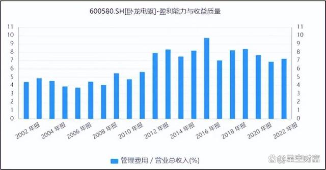 随着业务的发展,卧龙的毛利率不断上行,几乎均维持20%以上。但反观净利率,却在不断走下坡路。2023年前三季度,公司综合毛利率约为25.19%,但净利率仅为7.76%,根源就在于管理费用的吞噬。