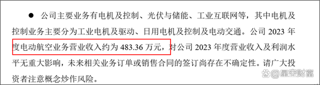最后,根据公司公告,2023年电动航空业务营收仅483万,对于一家营收超百亿的公司,占比微乎其微。虽说股价是对未来业绩的预期,那这预期是不是有点过早了?