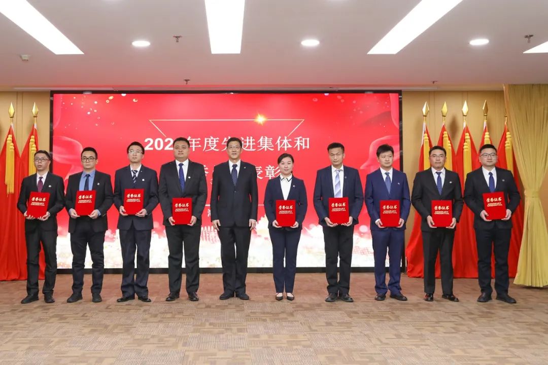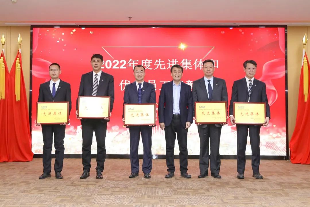 与会领导为2022年度先进集体、优秀员工代表颁奖。