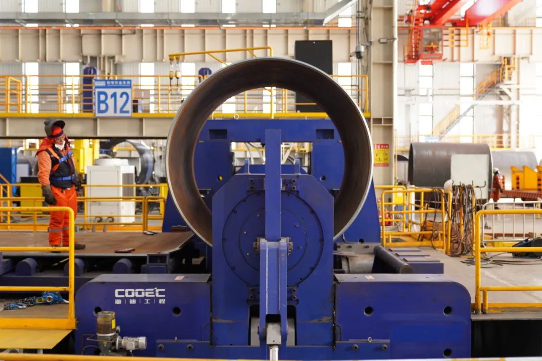 其中,天津智能制造分公司制管作业车间在工厂建设、工艺设计、计划调度和生产管理等多个环节进行了深度实践。通过数据融合,有效打破了业务间的数据隔阂,实现了海洋工程结构管预制从产品设计到仓储物流的全流程横向集成,以及从设备层到企业管理层的纵向贯通,构建了数字化与智能化深度融合的智能制造模式,打造了高效、灵活、协同的生产示范车间,为基地整体智能化建设贡献了重要力量。