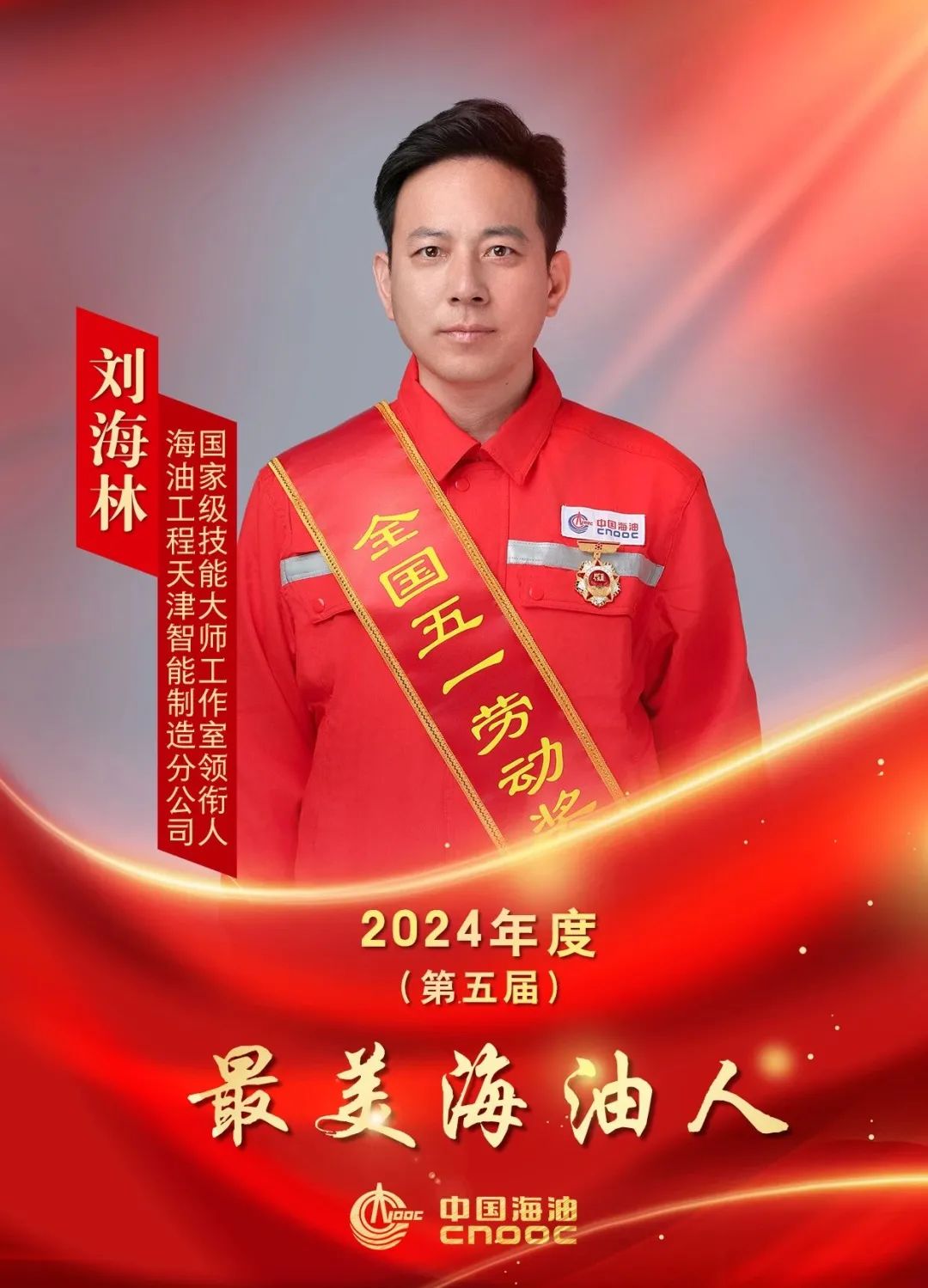 刘海林26年始终坚守一线、冲锋在前,参与“深海一号”“渤中19-6”等50多个重大工程,攻克20多项焊接关键技术,完成50多项技术革新,解决生产难题近100项,在超深水焊接、智能化焊接等技术领域走在行业前列,2024年荣获“全国五一劳动奖章”,并入选全国总工会“大国工匠”培育名单。