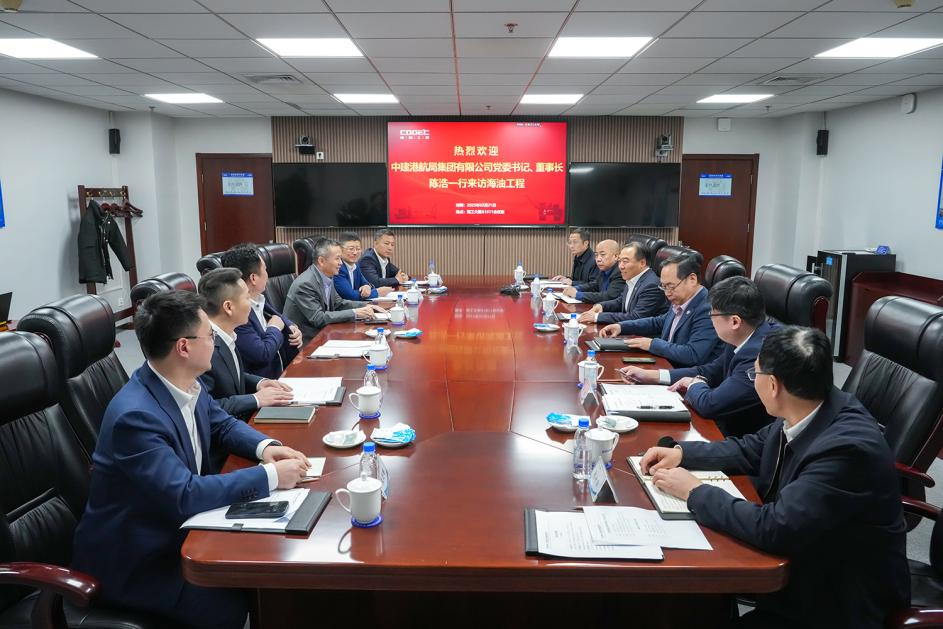 2月21日,中建港航局集团有限公司(简称:中建港航局)党委书记、董事长陈浩一行到访海油工程。公司董事长、党委书记王章领会见来访人员。