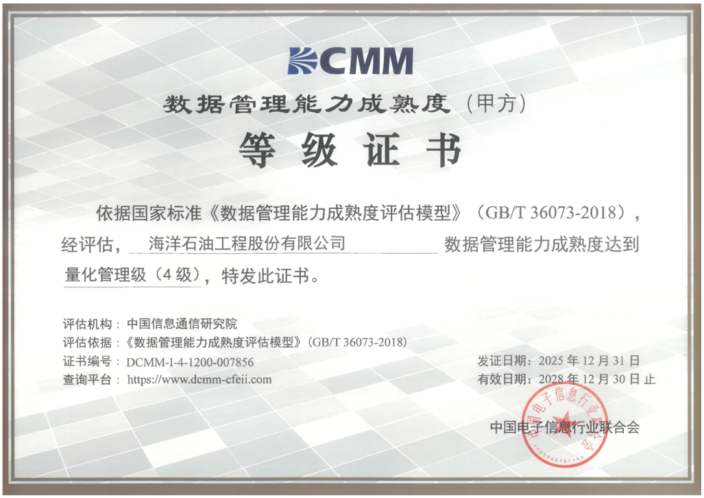 近年来,海油工程紧跟集团公司步伐,积极落实数据管理重点任务,将数据作为核心生产要素进行系统性规划与治理。公司以DCMM为抓手,围绕“服务公司战略、解决业务痛点、发挥数据价值”持续发力,推动数据要素与业务深度融合,构建起系统化、规范化的数据管理体系。通过量化分析与持续优化,数据质量显著提升,跨域共享能力不断增强,数据安全有效保障,数据价值持续释放,为战略决策和业务运营提供了高质量支撑,奠定了数据驱动业务创新与生产增效的坚实基础。
