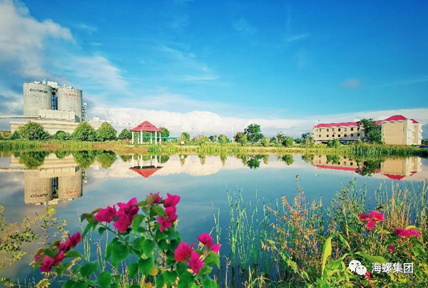 走进马德望海螺厂区,绿水环绕,青山相倚,花草掩映成趣,人工湖埂和绿植共同组成的“CONCH”标志在卫星图中也十分明显,巧妙的设计使得自然和人文景观相融极具特色,湖中成群的野鸭游过,一幅人与自然和谐共生的美丽画卷徐徐展开。