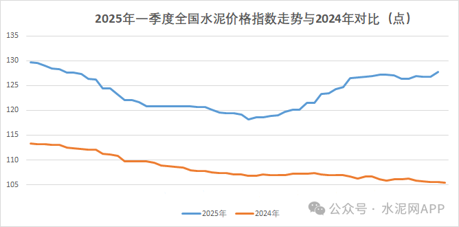 具体价格,2025年一季度全国水泥均价较2024年高出46元/吨左右。