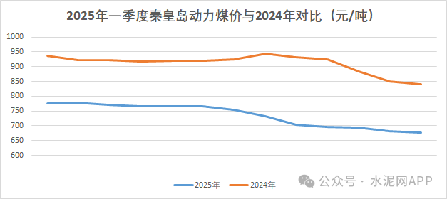 成本方面,中国水泥网大数据显示,今年以来,秦皇岛动力煤(Q5500)平仓含税价整体呈现下行趋势。从年初775元/吨到三月底下跌到677元/吨,跌幅近100元/吨,一季度均价728.11元/吨。2024年初秦皇岛动力煤(Q5500)平仓含税价月933元/吨,三月底价格为840元/吨,2024年一季度均价913.07元/吨。
