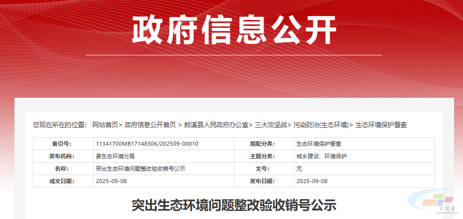 如对该问题整改完成情况有异议,请在公示期间(2025年9月8日至2025年9月19日,共10个工作日)向宣城市生态环境局反映。