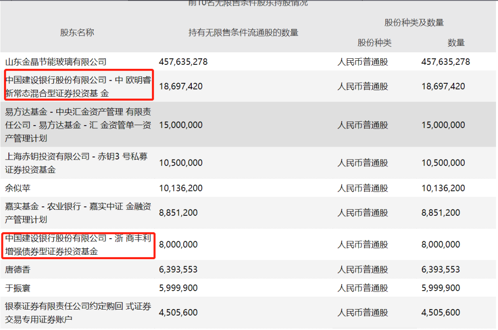 除了偏股混合型基金之外,浙商丰利增强债券这只偏债混合型基金也位列前十大股东,持有金晶科技800万股,基金由周锦程、贾腾、陈亚芳管理。今年以来,该基金收益率为33.39%,被投资者称为“债基跑出了混基的气势”。