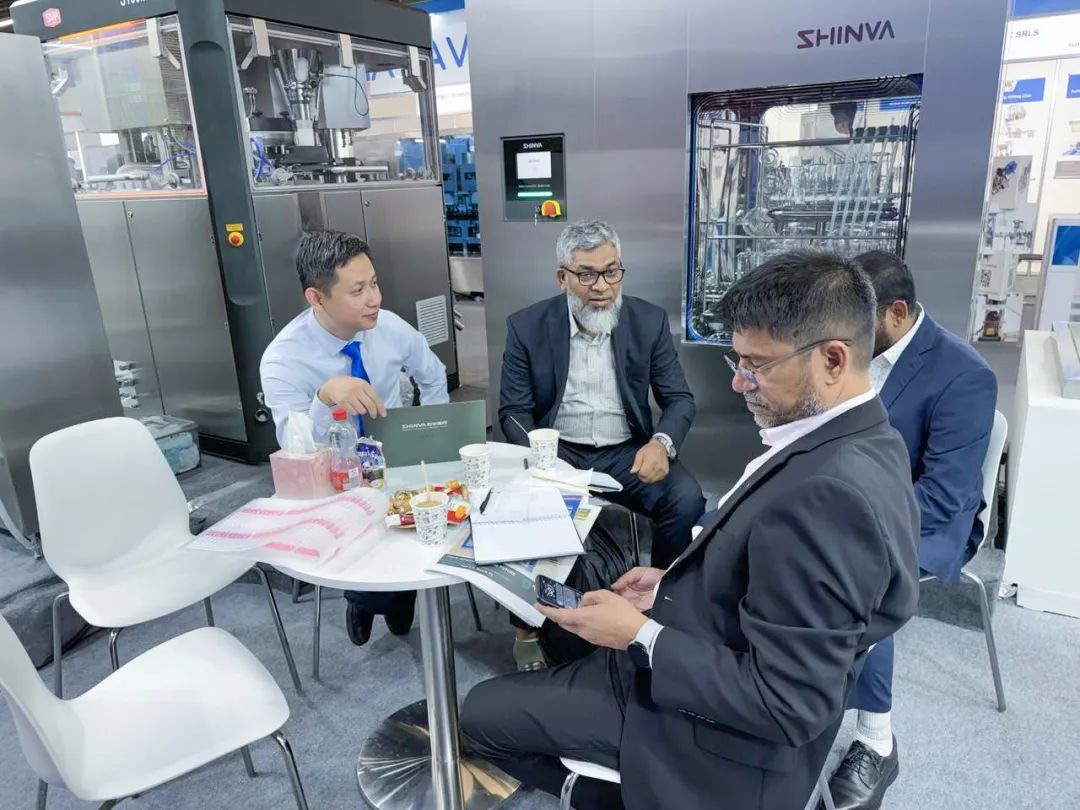展会为期五天,新华医疗盛装出席,与世界各地的客户展开深入的商务洽谈,尤其注重与“一带一路”沿线国家的合作。2024年,新华医疗制药科技集团在“一带一路”沿线国家频传佳音,成功签订了多台灭菌器、清洗机、隔离器等无菌保障类产品,以及BFS吹灌封一体机、BFS灯检检漏机等小容量注射剂类产品的供应合同。同时,非PVC膜全自动制袋灌装机、水浴灭菌器等大容量注射剂类产品也受到了广泛好评。