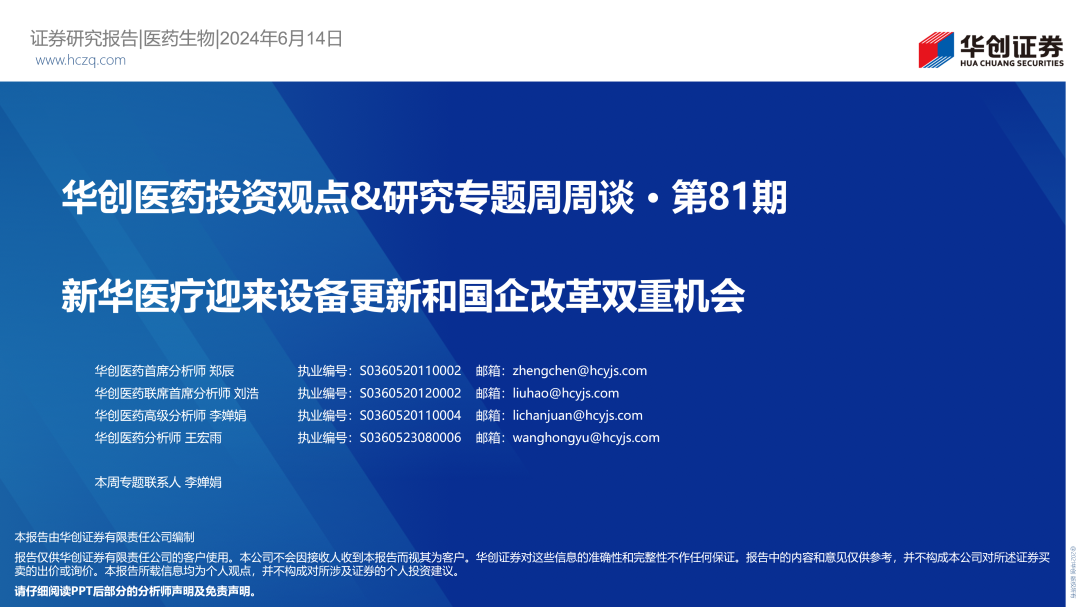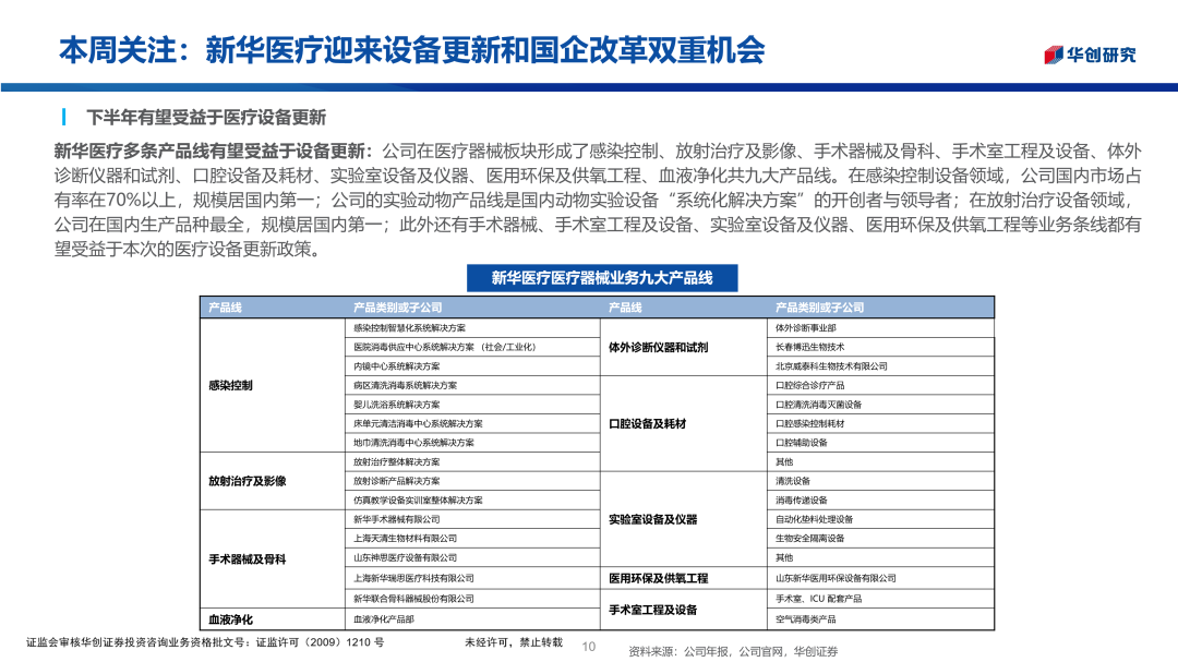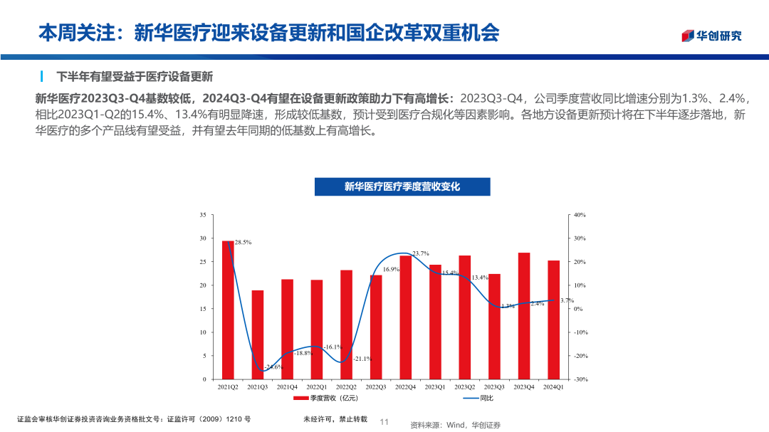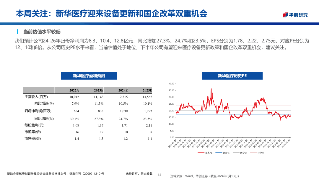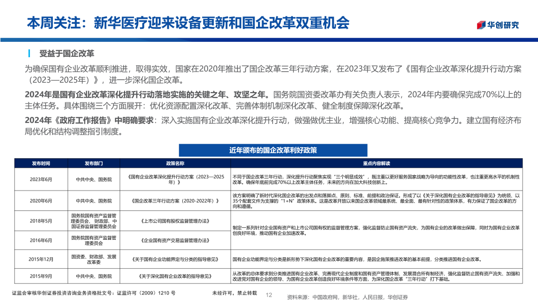华创医药周观点:新华医疗迎来设备更新和国企改革双重机会2024/06/15