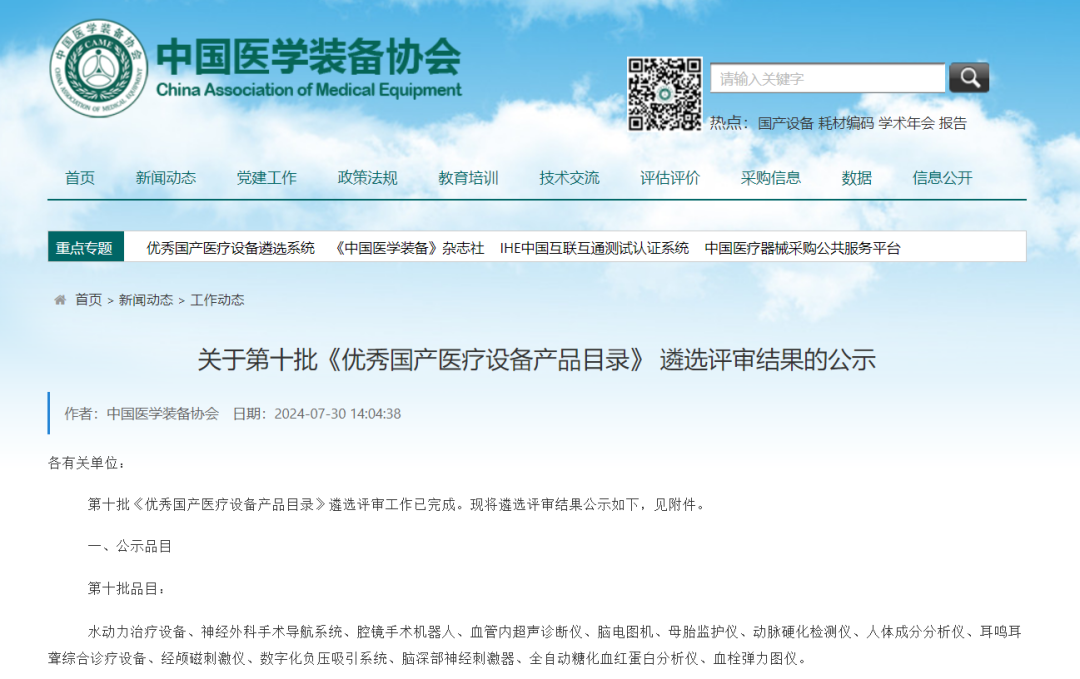 据了解,优秀国产医疗设备产品是在国家卫生健康委员会规划发展与信息化司委托下,由中国医学装备协会组织专家严格遴选而出。入选目录的国产医疗设备技术先进、质量优良,不仅可为全国医疗卫生机构配置装备提供参考,还将加速医疗器械的国产化发展进程。