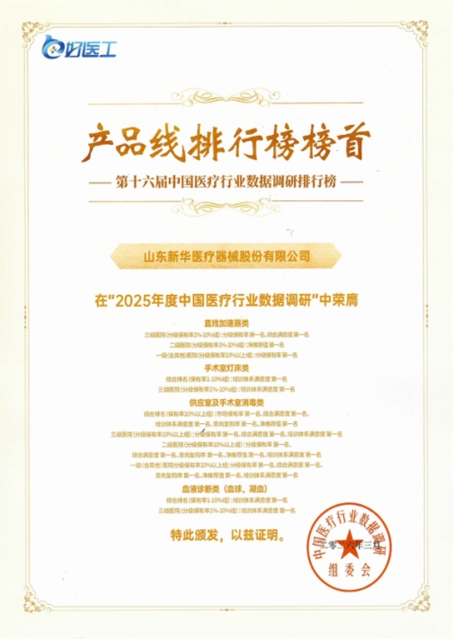 面对全球医疗技术的快速发展和市场竞争的日益激烈,新华医疗坚持创新驱动发展战略,围绕手术机器人、智慧内镜诊疗、生命支持等新赛道,聚焦康复养老、软式内镜等关键领域,持续加大研发投入,构建起“产学研用”协同创新生态,在高端化、智能化、绿色化的发展道路上稳步前行。调研数据显示,新华医疗的直线加速器类产品、手术室灯床类产品、供应室及手术室消毒类产品、血液诊断类产品(血球、凝血)等入选产品线排行榜榜首,彰显了企业产品在医疗装备领域的领先地位。