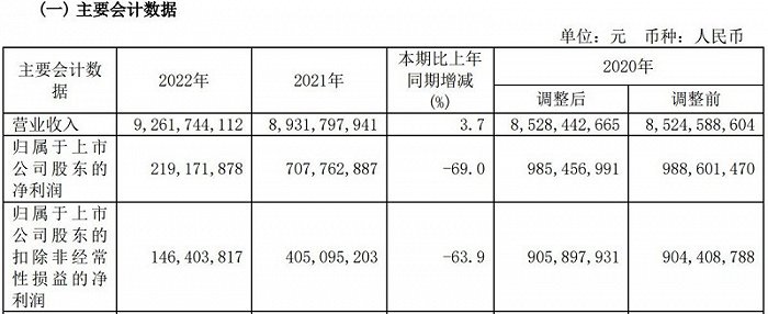 值得一提的是,用友网络此前披露的2022年年度报告显示,2020年至2022年的营业收入分别呈现为85.28亿元、89.32亿元和92.62亿元的逐年增长趋势,然而归母净利润却呈现为9.85亿元、7.08亿元和2.19亿元的不断下滑的态势,其中2022年度归母净利润同比出现了69%的大幅下滑。
