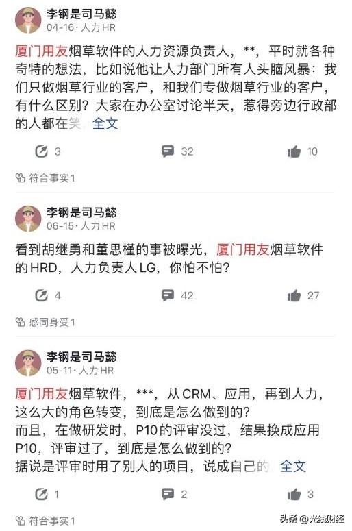 众所周知,用友擅长大企业,尤其是央国企客户市场,但要服务好大客户并不是件易事,因为他们往往需要定制化的服务,议价能力也较强。用友网络的毛利率低于同行有这方面的原因。比如两年前国内某烟草替代SAP的项目,用友被友商击败,随后出现了连锁反应,用友在其他部分地区的烟草项目连续失手,更有员工在脉脉上曝出用友厦门烟草事业部管理混乱,领导甚至会因为一个无聊问题开头脑风暴会讨论半天。