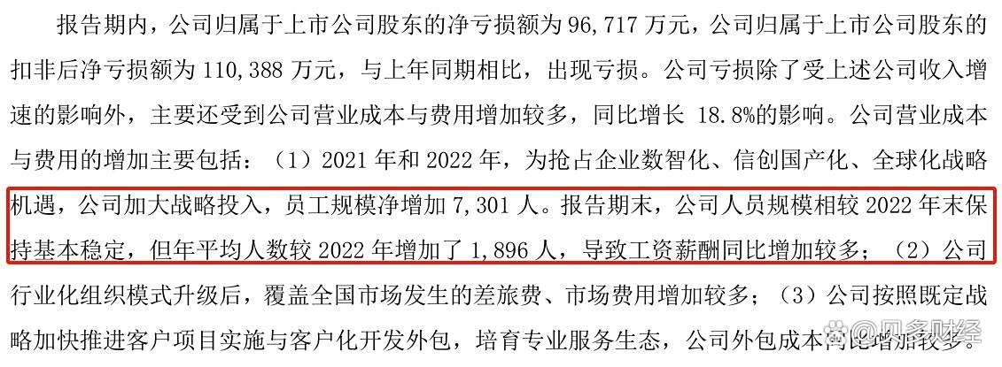 2023年年报则显示,为抢占企业数智化、信创国产化、全球化战略机遇,用友网络加大战略投入,2021年和2022年员工规模净增加7301人。截至2023年末,该公司人员规模基本保持稳定,但年平均人数较2022年增加1896人。