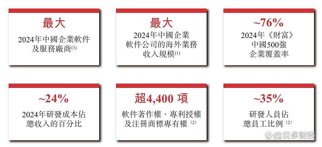 据弗若斯特沙利文资料,以2024年的收入计,用友网络是中国企业软件及服务市场最大的市场参与者,能够提供各类企业软件及智能服务产品矩阵(包括云服务及软件产品),以满足各种规模企业的数智化转型需求。