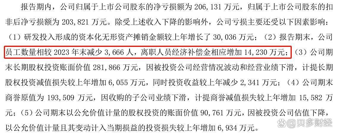 而结合其年报可知,过去数年,用友网络拥的员工数量处于急剧变动状态。我在,2024年末的员工数量较2023年减少3666人,离职人员经济补偿金相应增加1.42亿元。