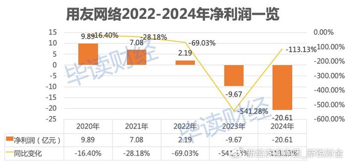 然而时移世易,在奔涌向前的AI时代浪潮下,用友却正经历着严峻挑战。最新年报数据显示,2024年,公司录得营收91.53亿元,同比下滑6.57%;归属母公司的净亏损高达20.61亿元,同比巨幅下滑113.13%。这已是用友连续第二年深陷亏损泥潭。