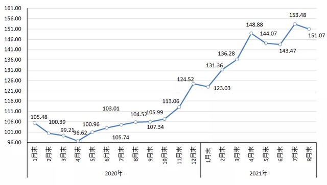 界面新闻获悉,2021年以来,钢材价格高企。据中国钢铁工业协会监测,今年8月末,中国钢材价格指数(CSPI)升至151.07点,与上年同期相比上升45.33点,升幅为42.87%。据我的钢铁网数据,截至9月24日,全国主要城市20mm三级抗震螺纹钢均价5751元/吨,较9月18日上涨83元/吨;8.0mmHPB300高线均价6045元/吨,较9月18日上涨67元/吨。